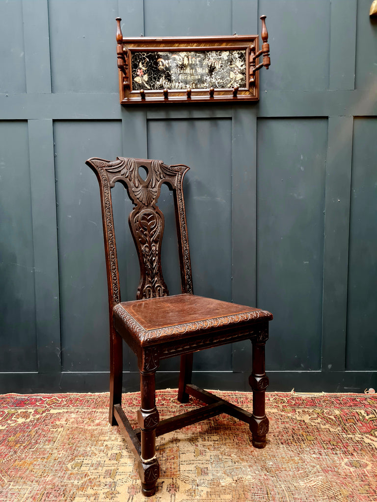 Antique 19th century carved oak chippendale revival style side chair