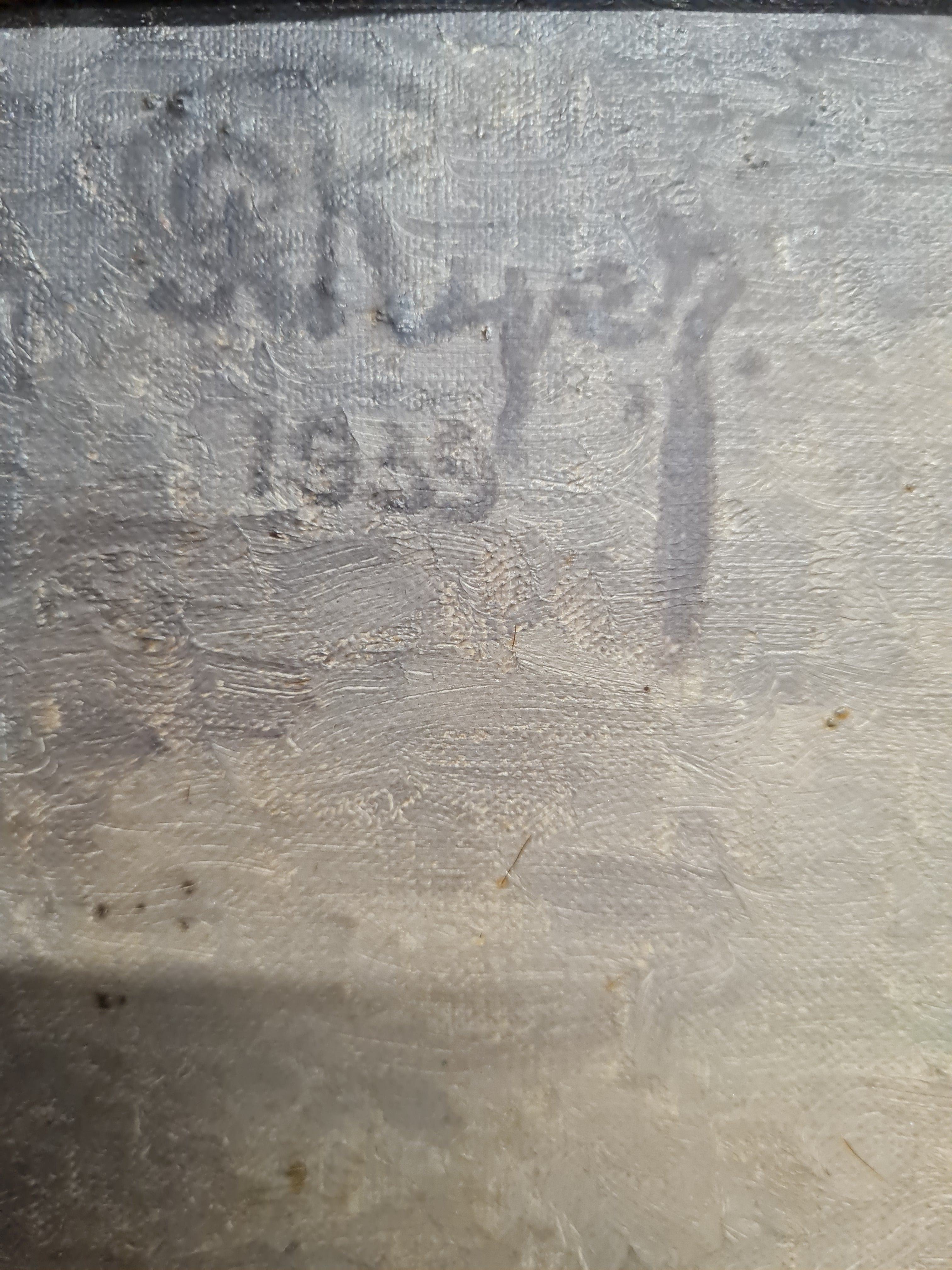The canvas is signed and dated 1939, with the signature remaining partially indistinct. Presented in a sympathetic early 20th-century frame.