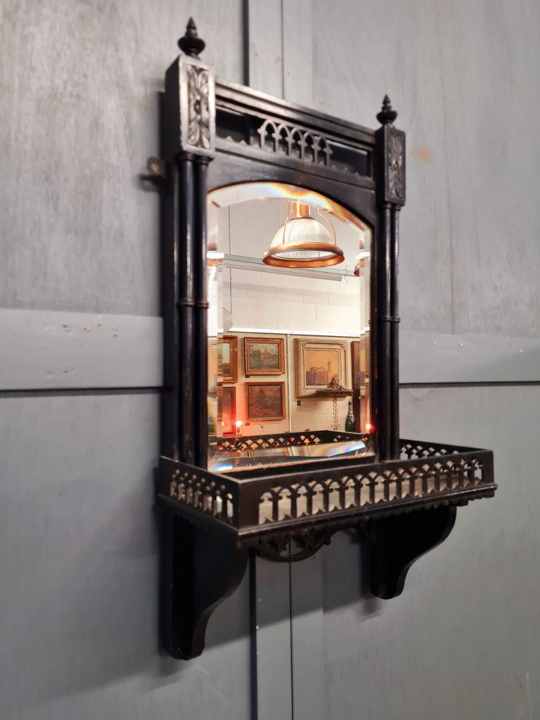 Antique Aesthetic Movement Ebonised Wall Mirror with Shelf, English, c.1880