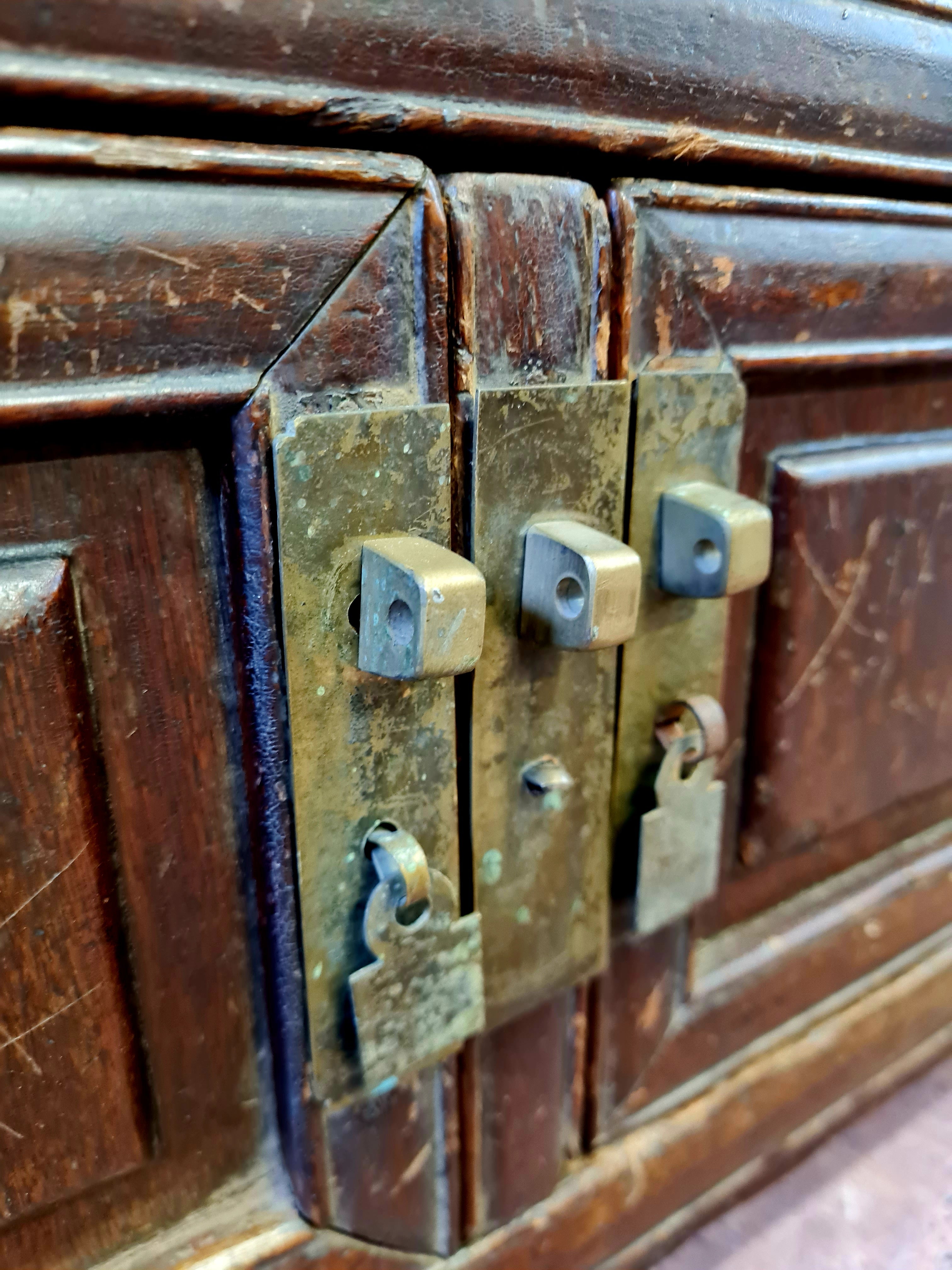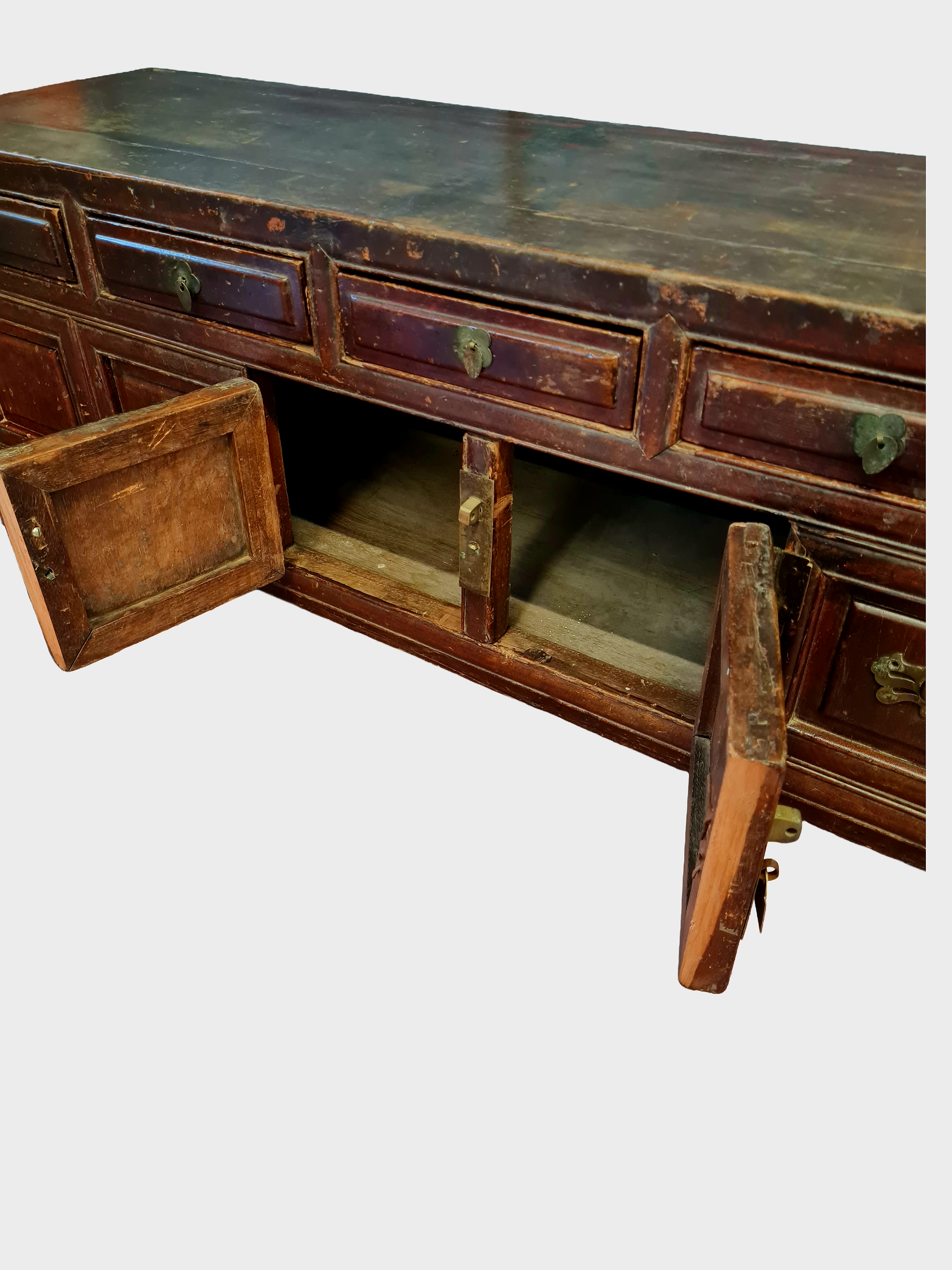 A genuine, unaltered piece of Qing-period furniture that works beautifully in contemporary settings as a low console, media unit or window-side cabinet.