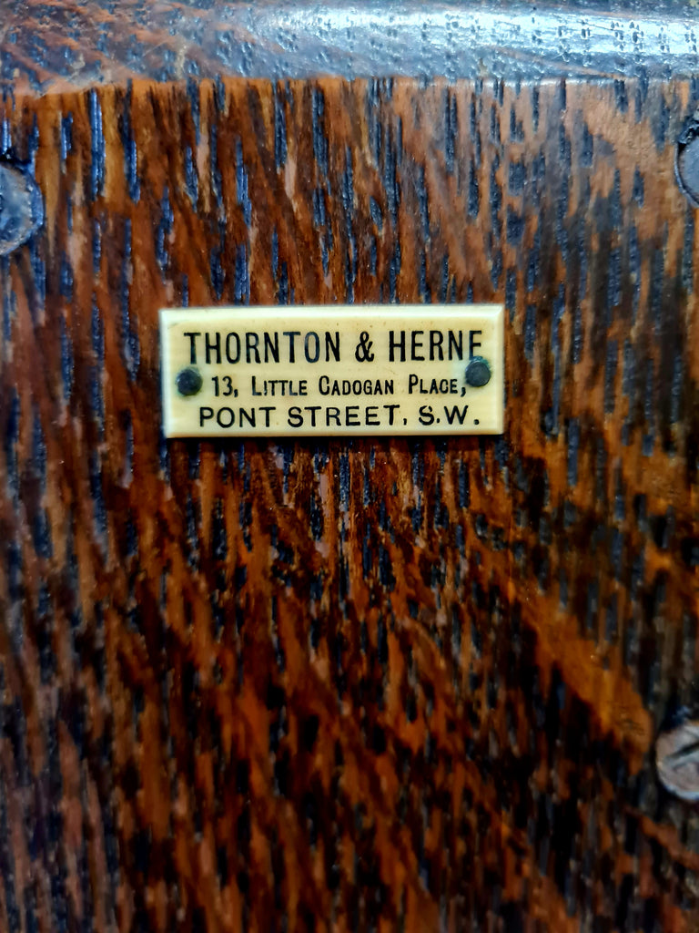 Thornton & Herne were respected London makers and decorators, active from the 1870s to early 1900s, known for producing quality furniture for discerning clients in Chelsea and the West End.