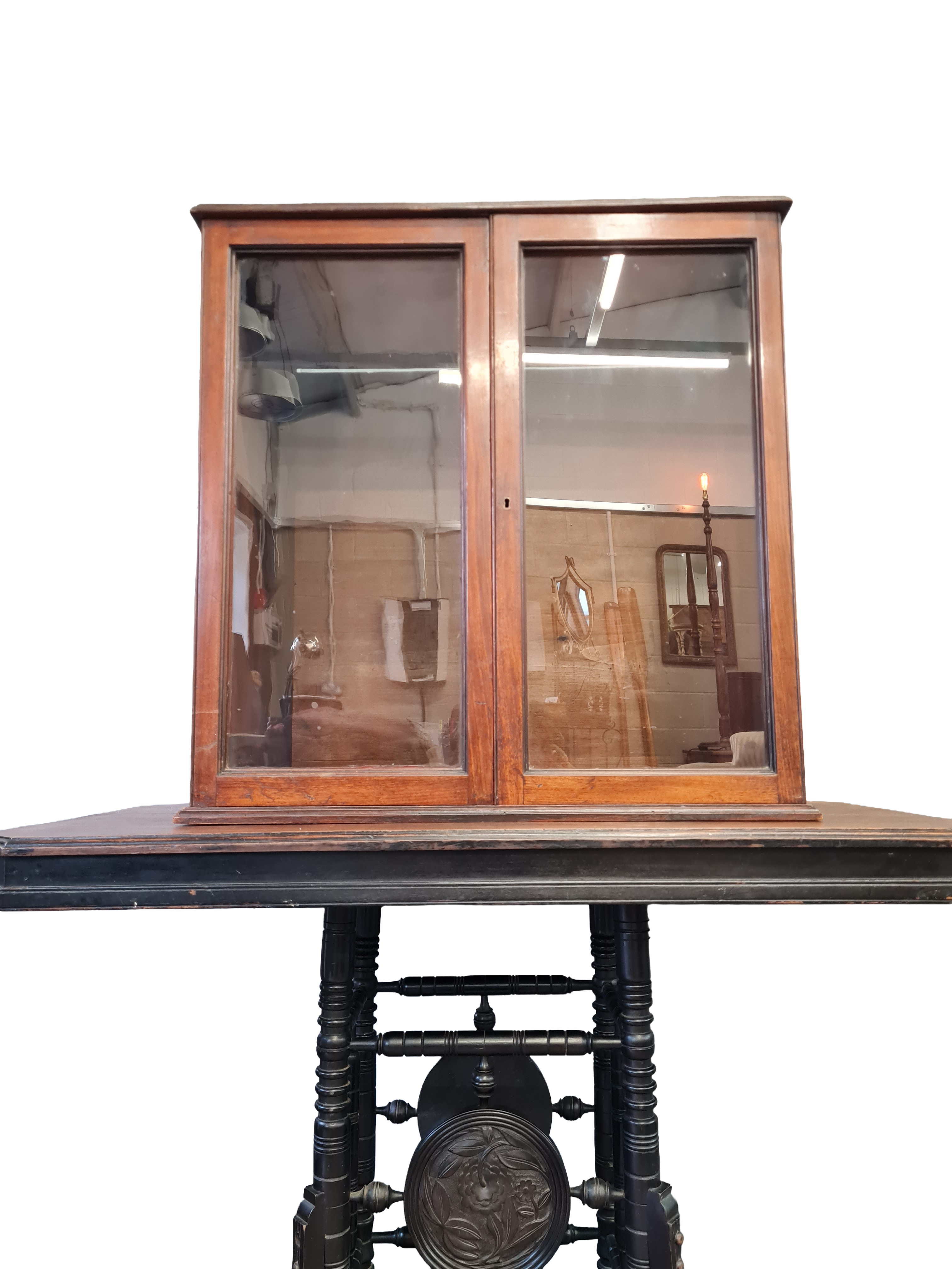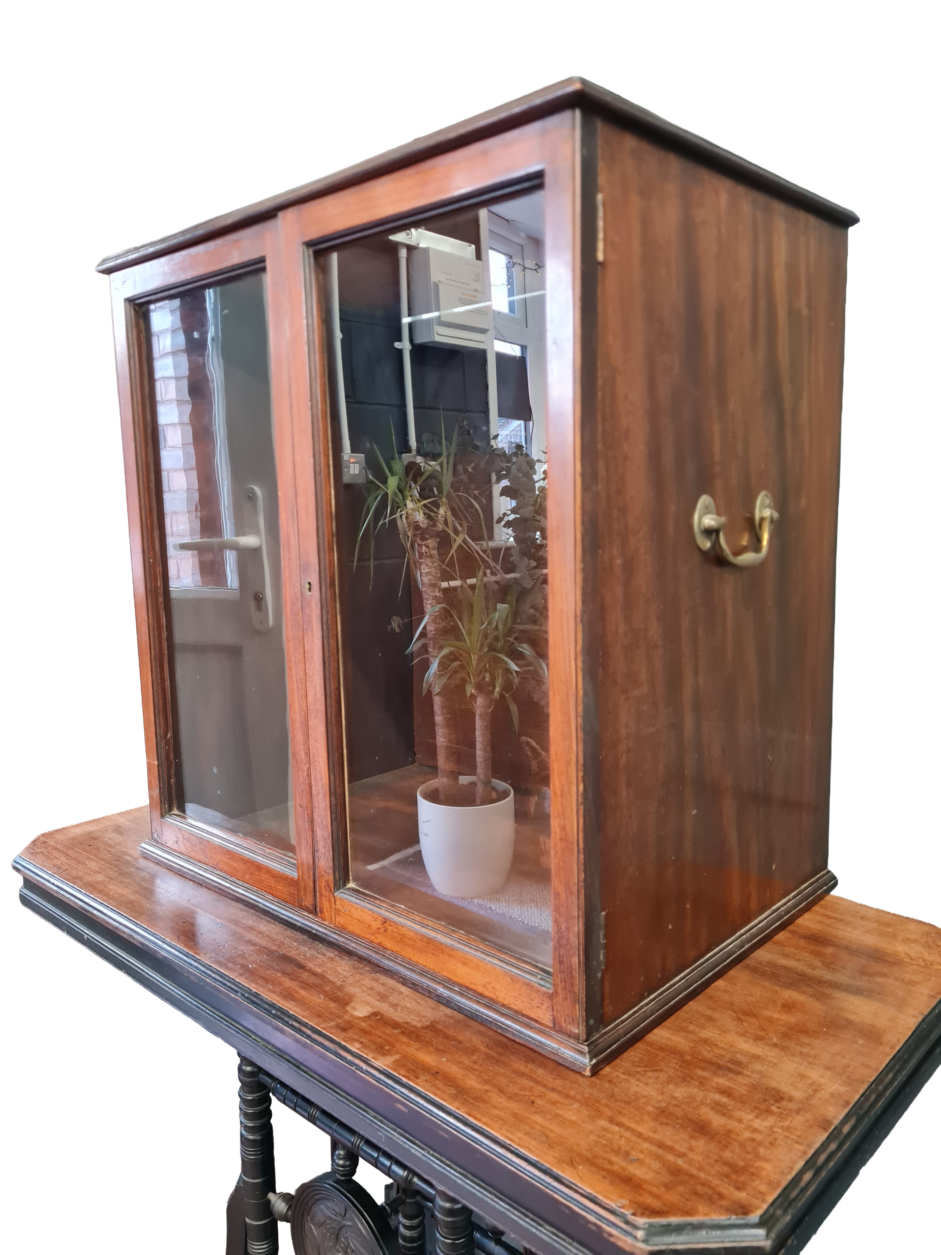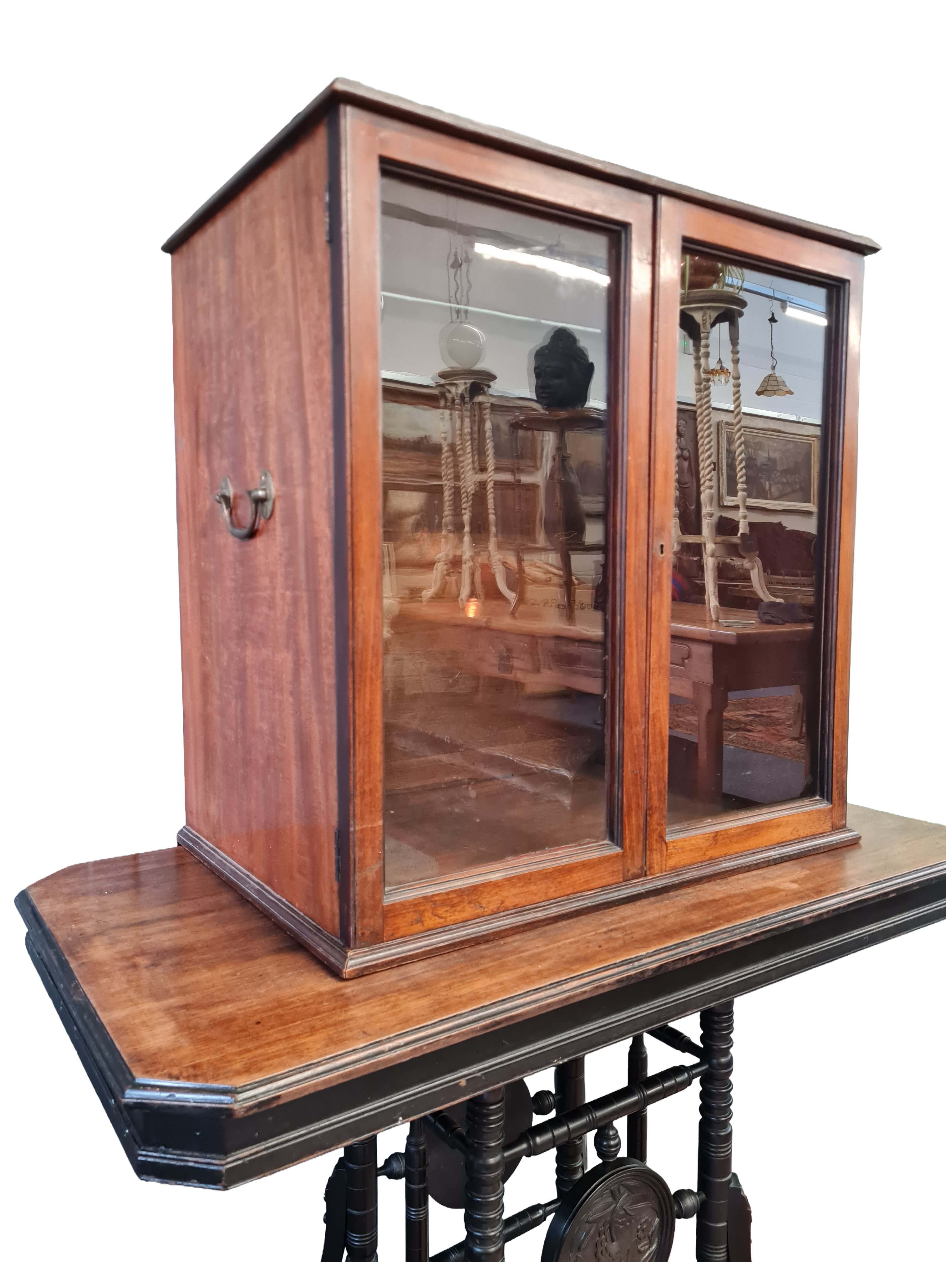 A refined Edwardian table-top display cabinet in mahogany, dating to the early 20th century. The cabinet features glazed panel doors with a warm, well-aged patina and clean, restrained proportions typical of the period. Ideal for displaying small objects, curios or collectibles, it sits comfortably on a sideboard or table and presents well from all angles. A practical and elegant piece of antique furniture. No key to the original lock, however a locksmith could supply with relative ease.