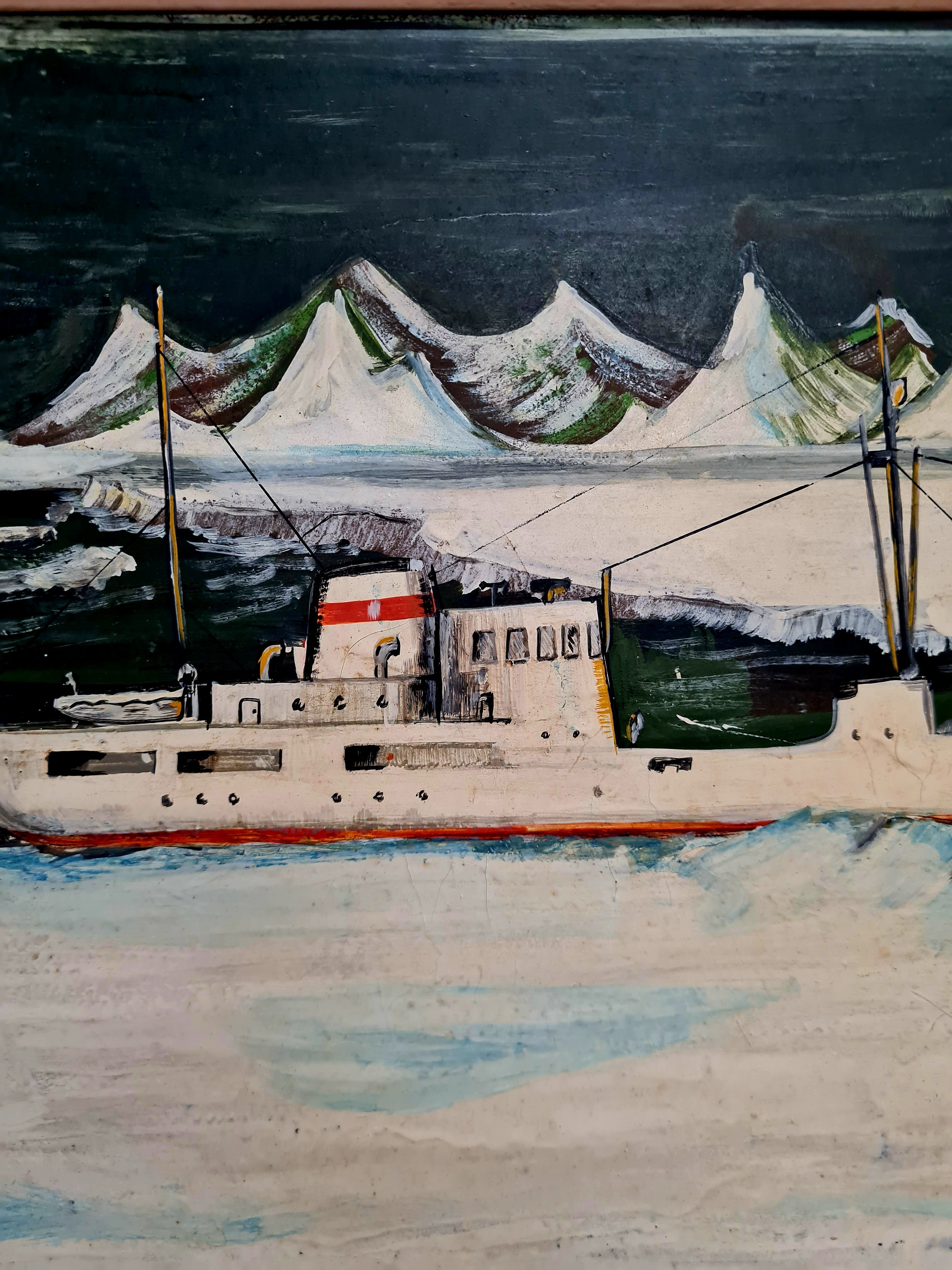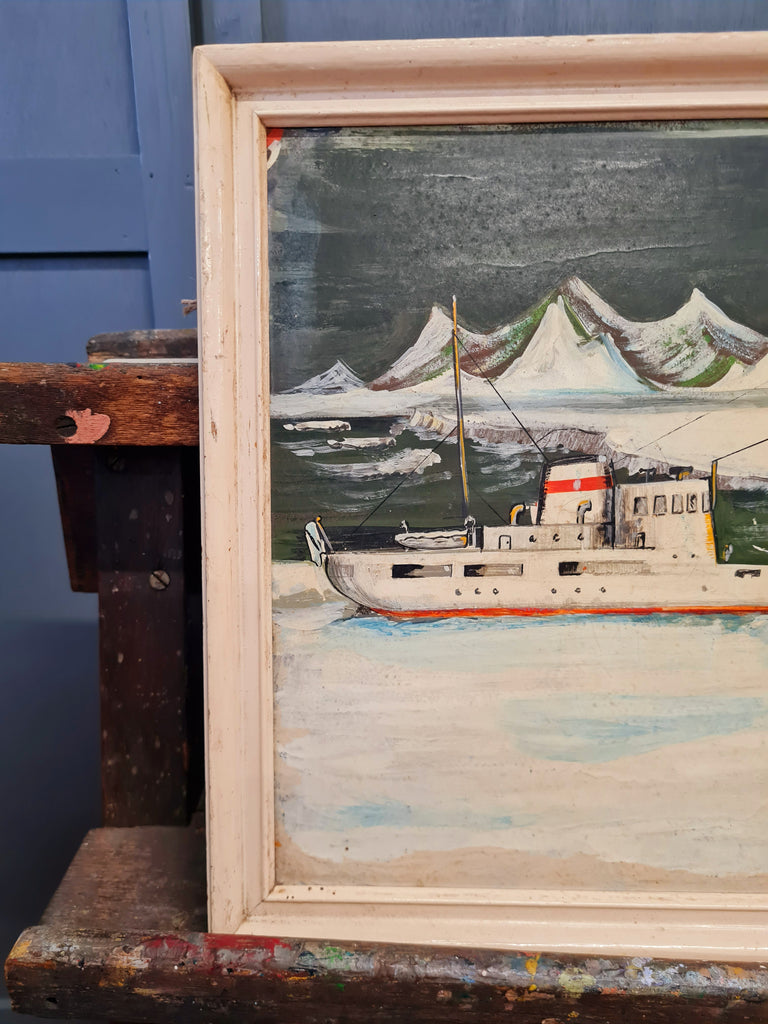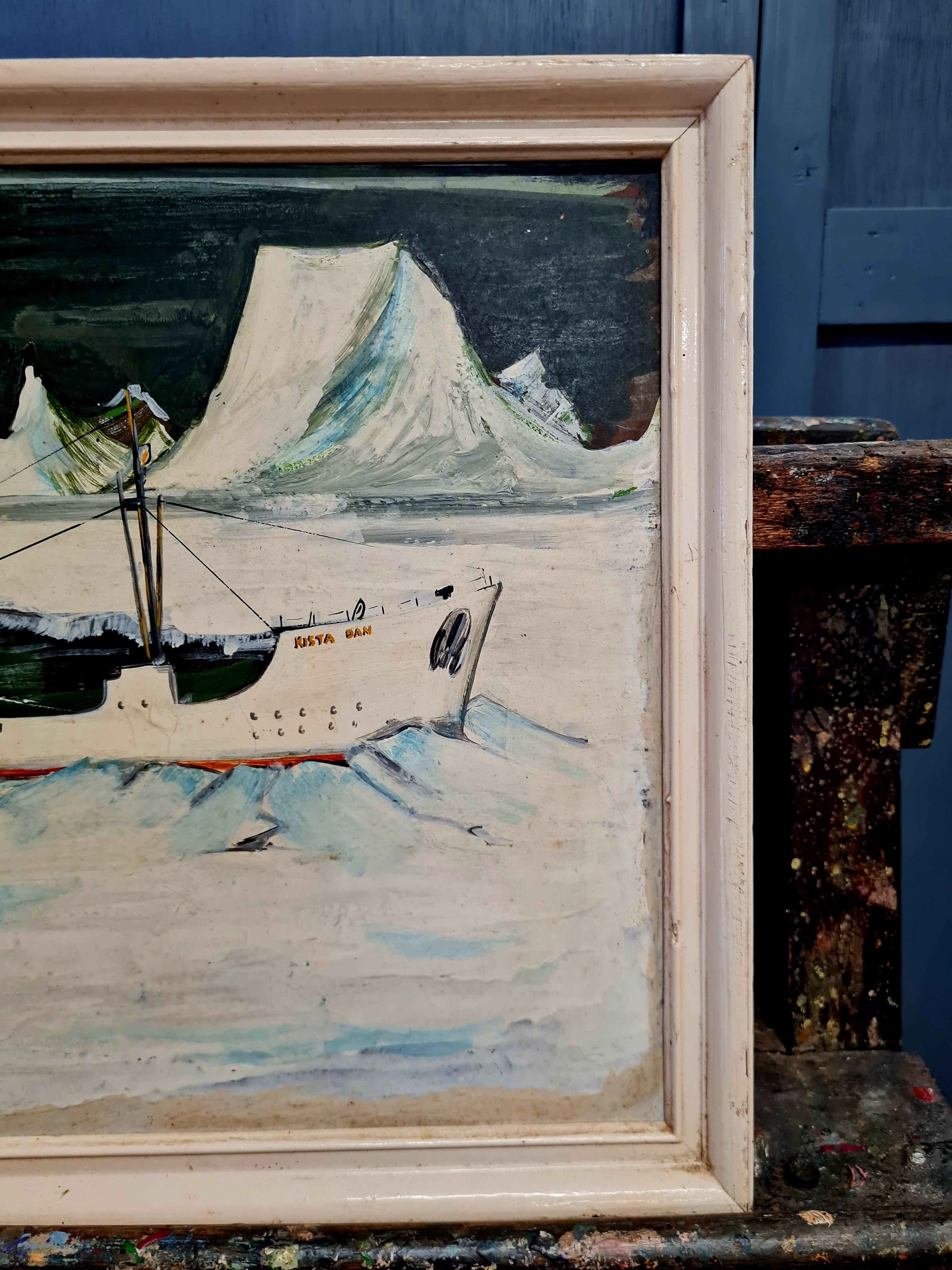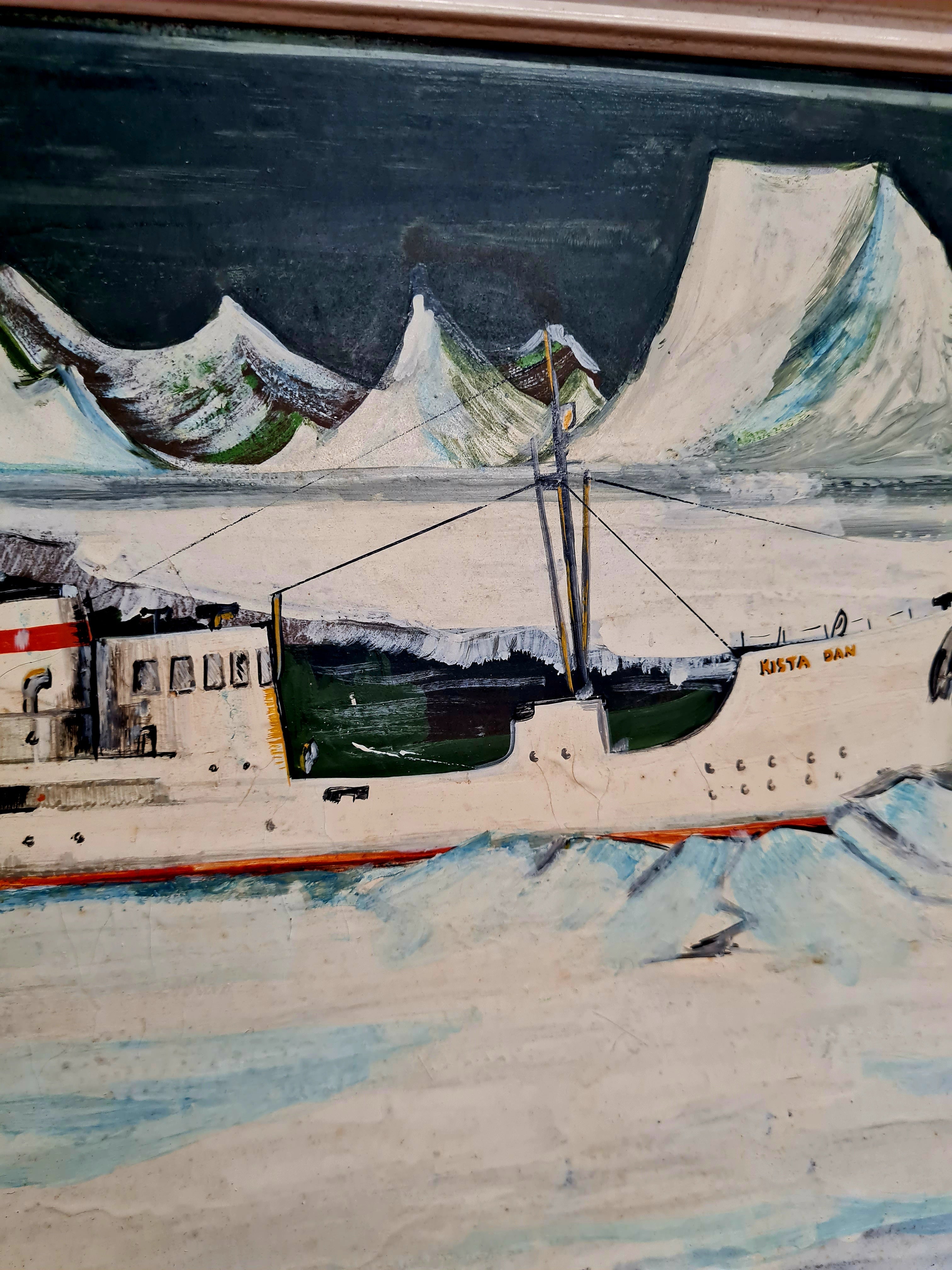 Vintage Framed Oil Painting on Board of the "MV Kista Dan 1953-1957