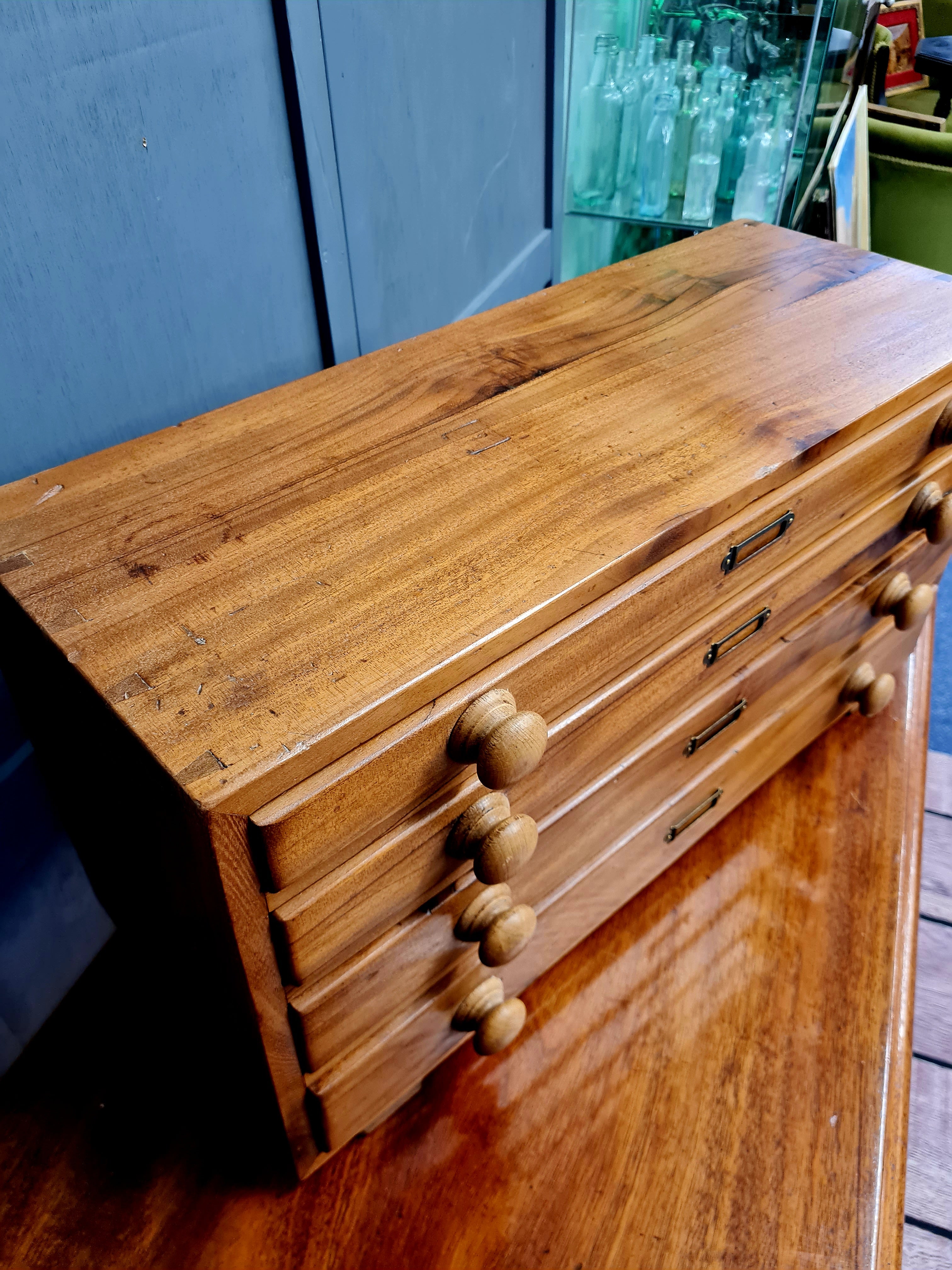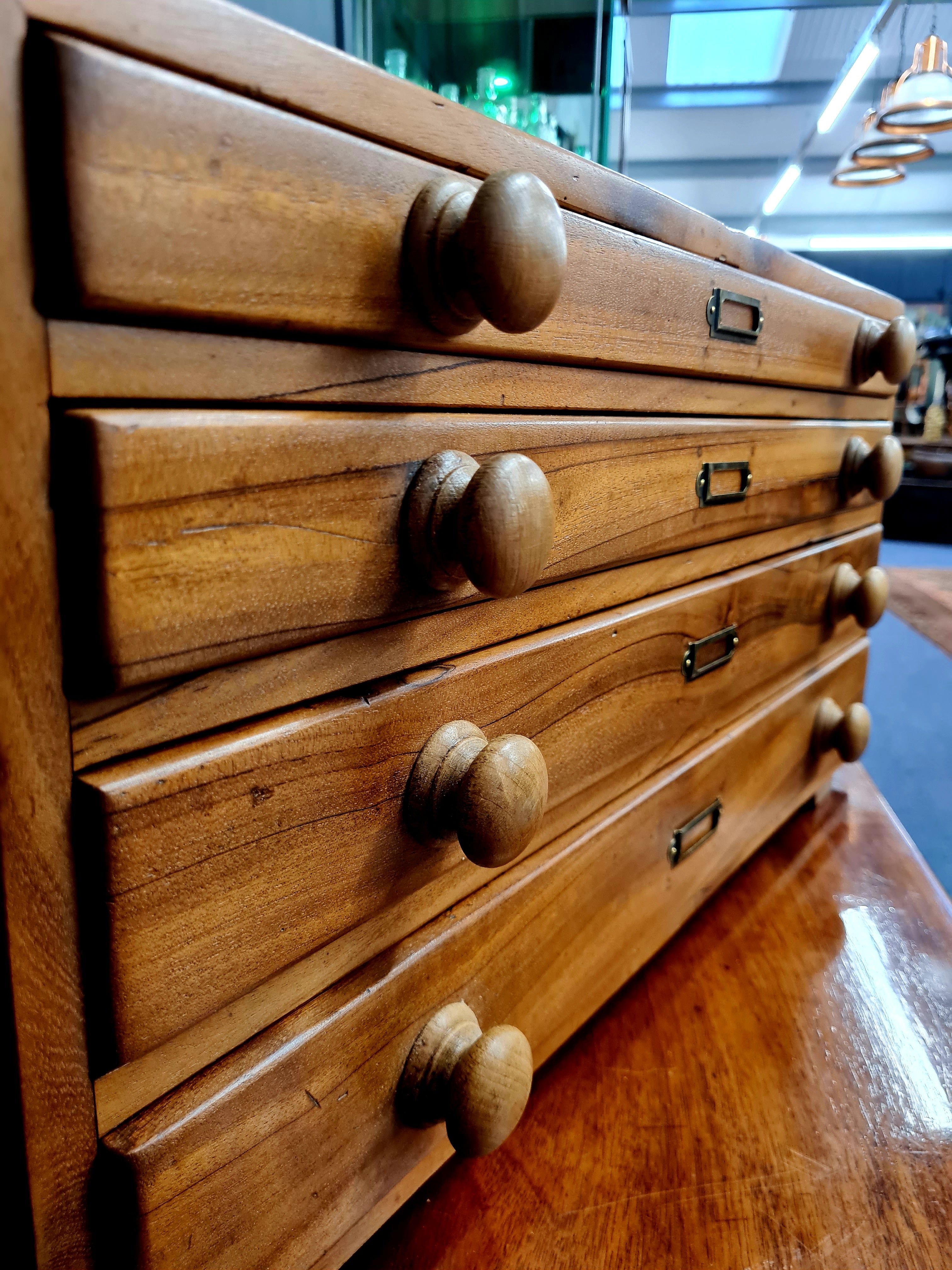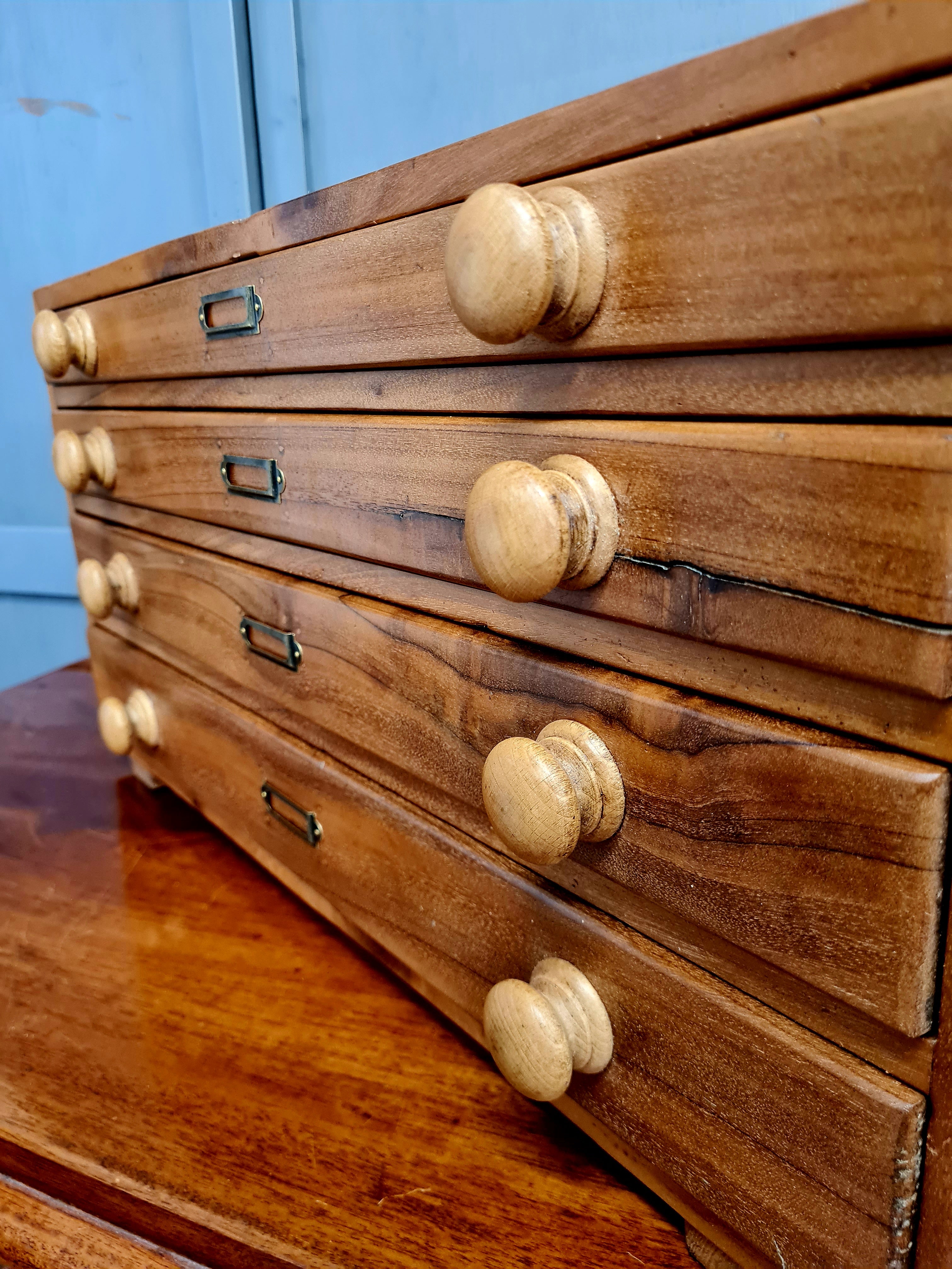 Vintage Walnut Engineers Drawers - Tool Chest. Nicely made scratch built, fully restored and clear waxed. New label holders. Age related grain split to the face of one drawers as pictured.