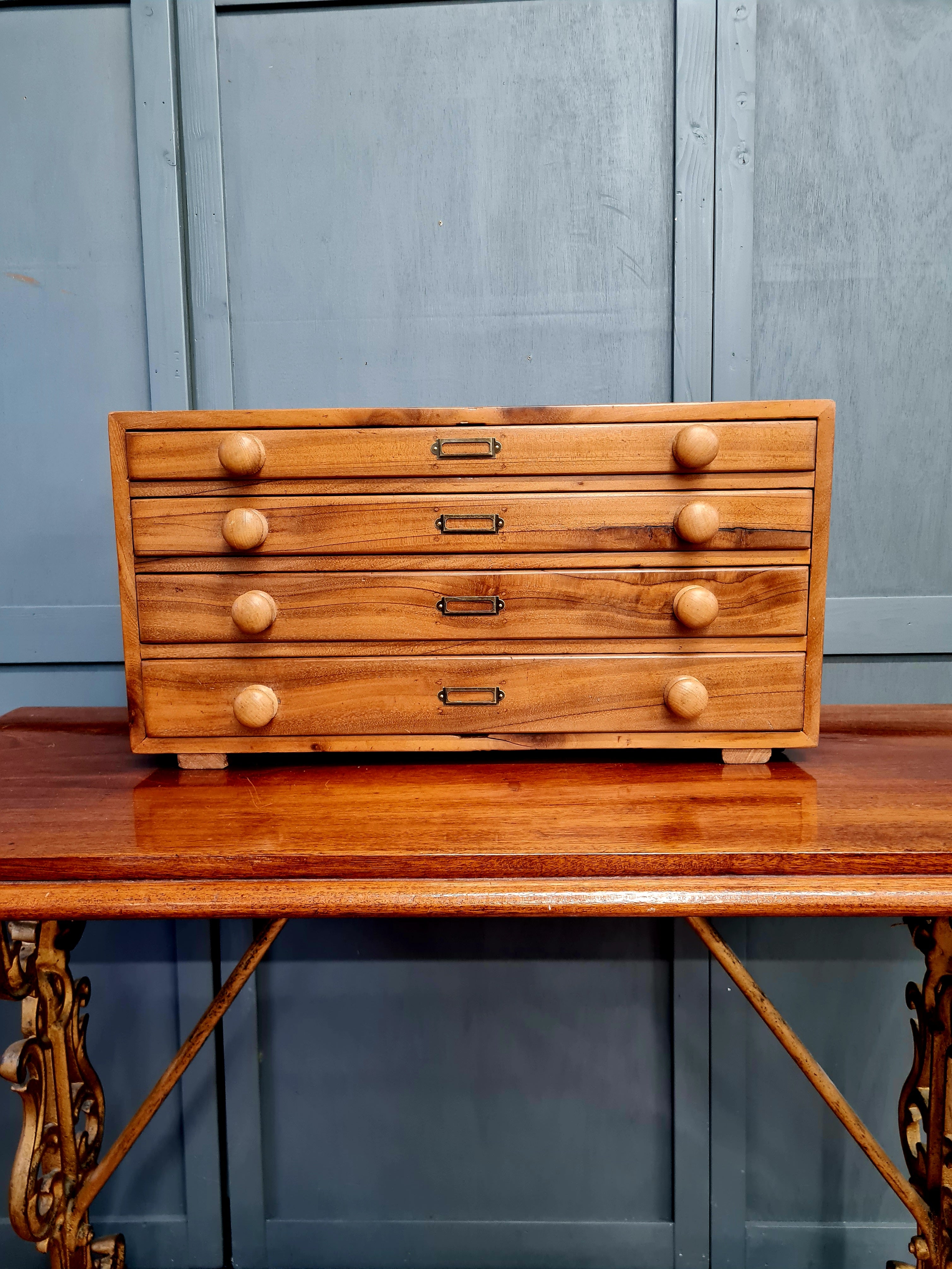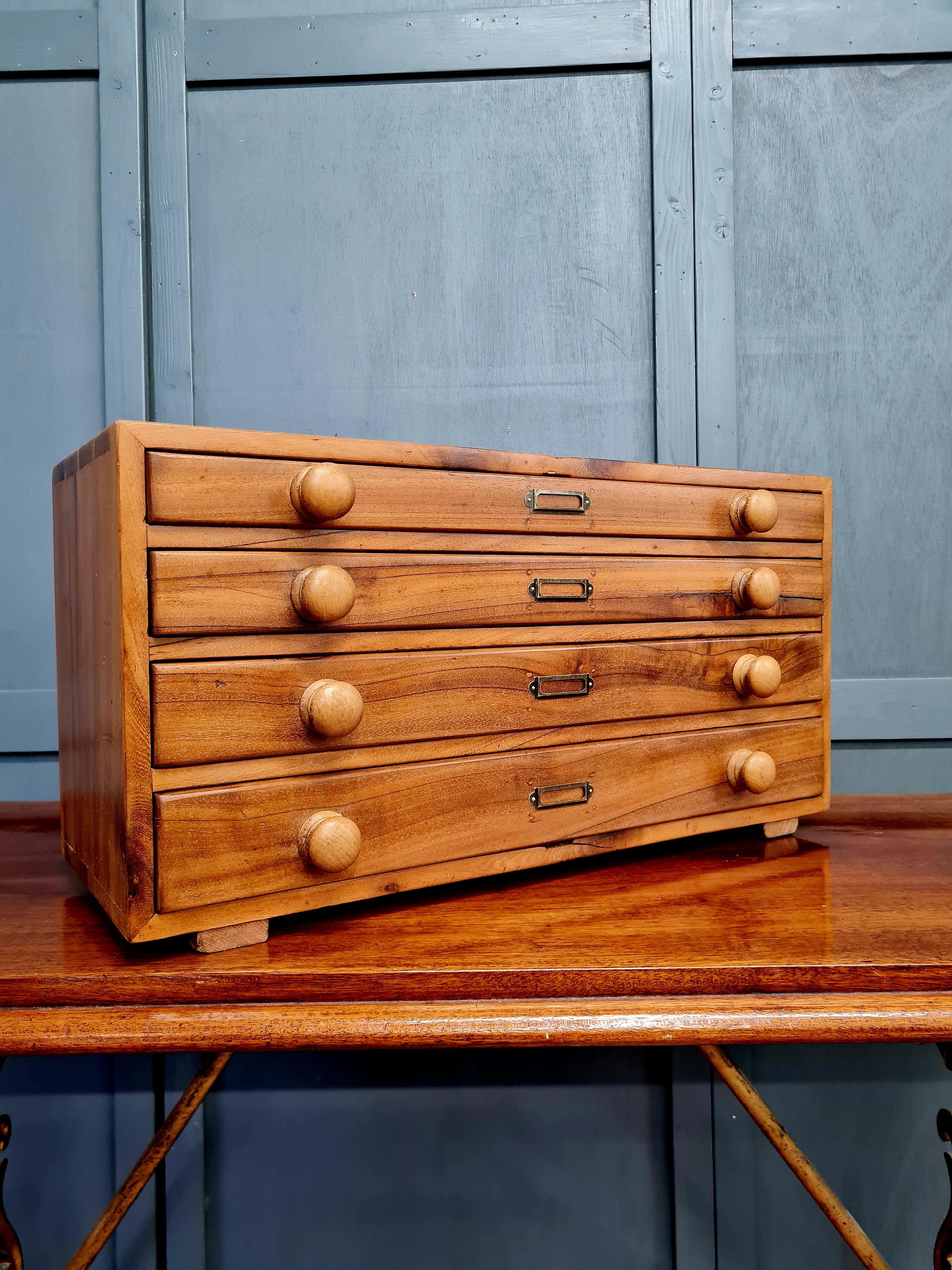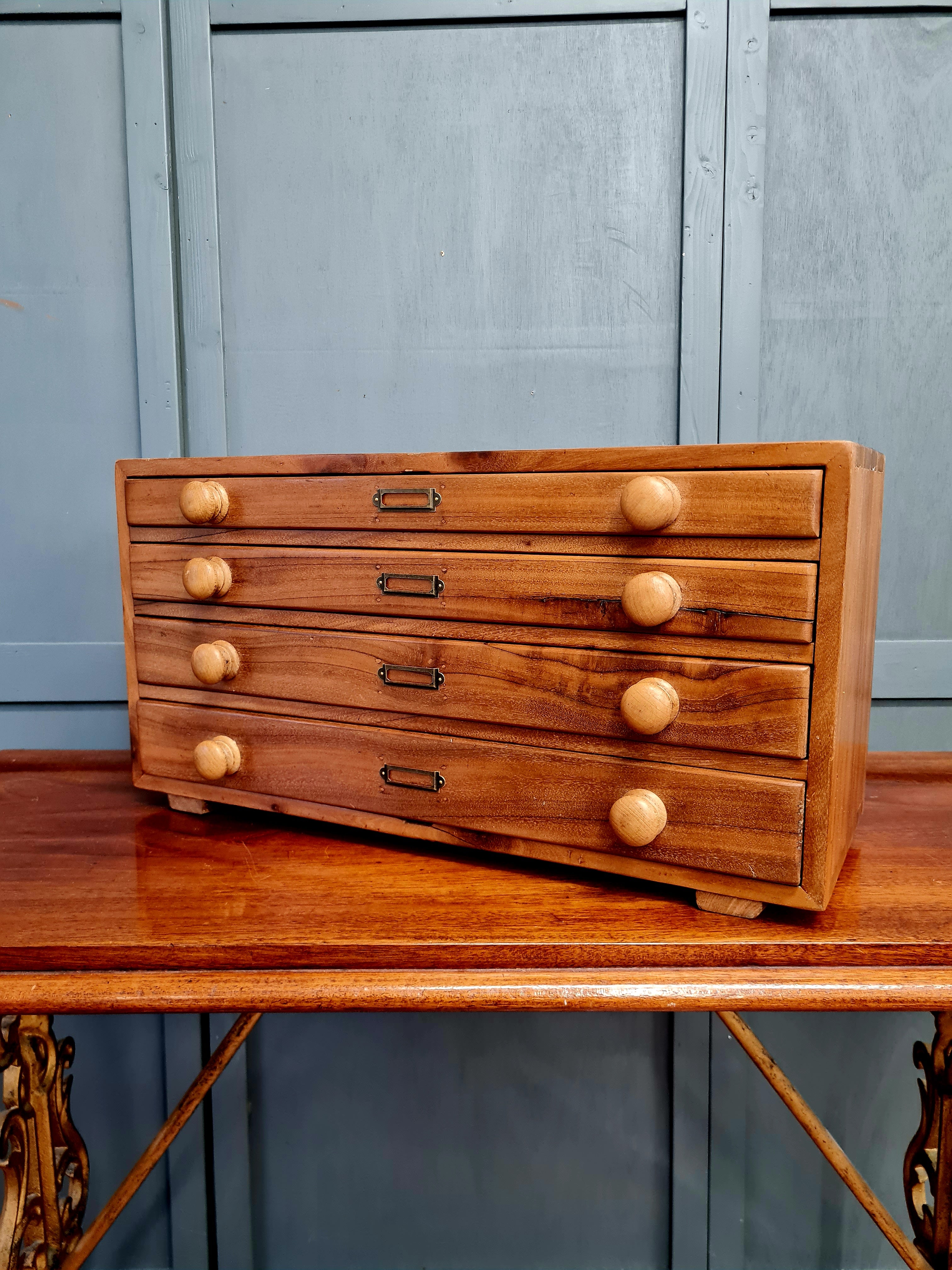Vintage Walnut Engineers Drawers - Tool Chest. Nicely made scratch built, fully restored and clear waxed. New label holders. Age related grain split to the face of one drawers as pictured.