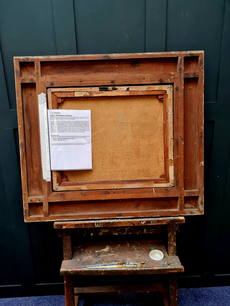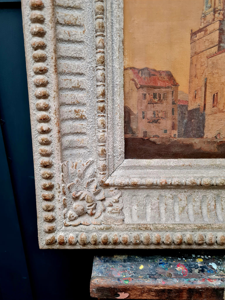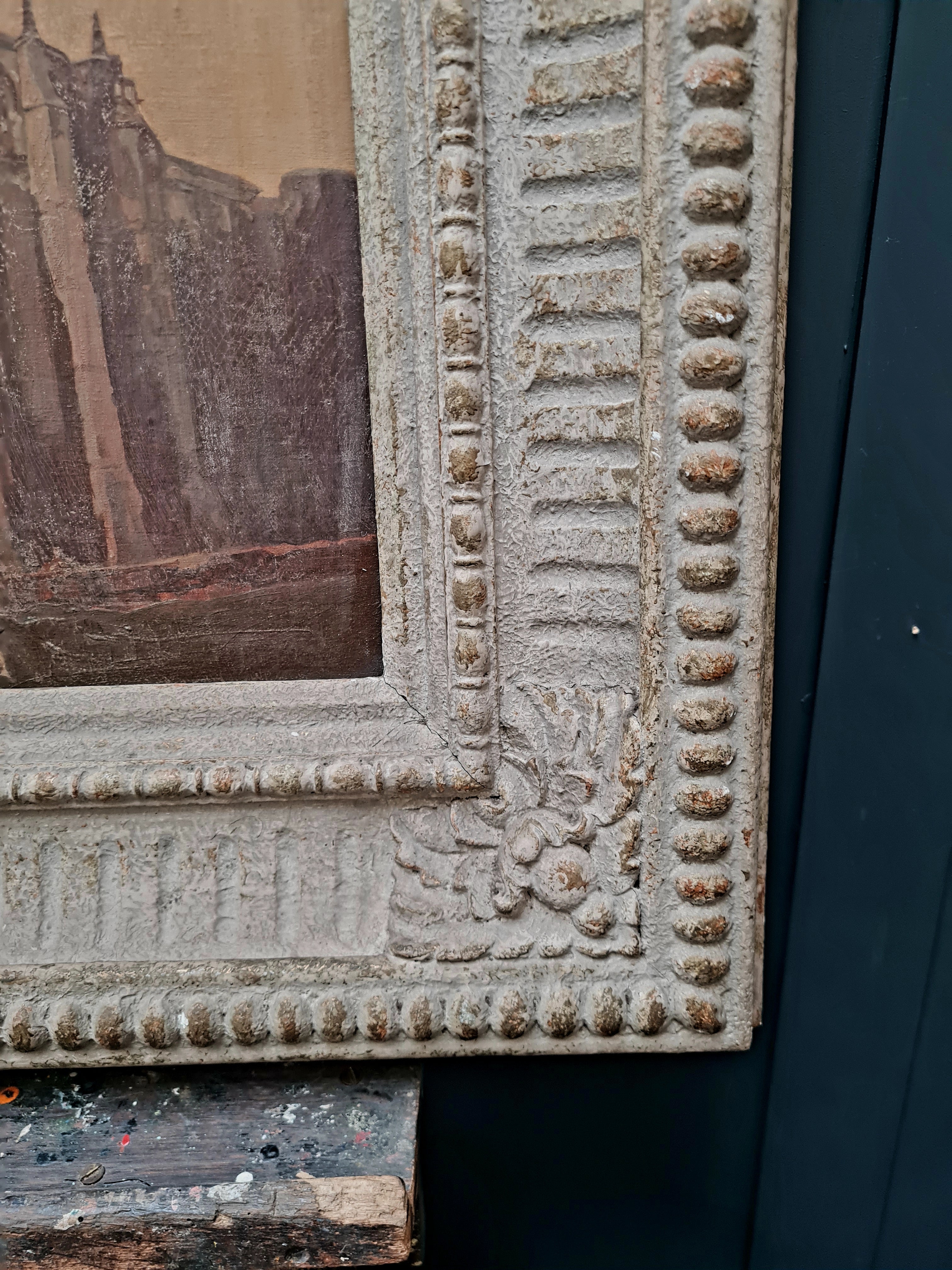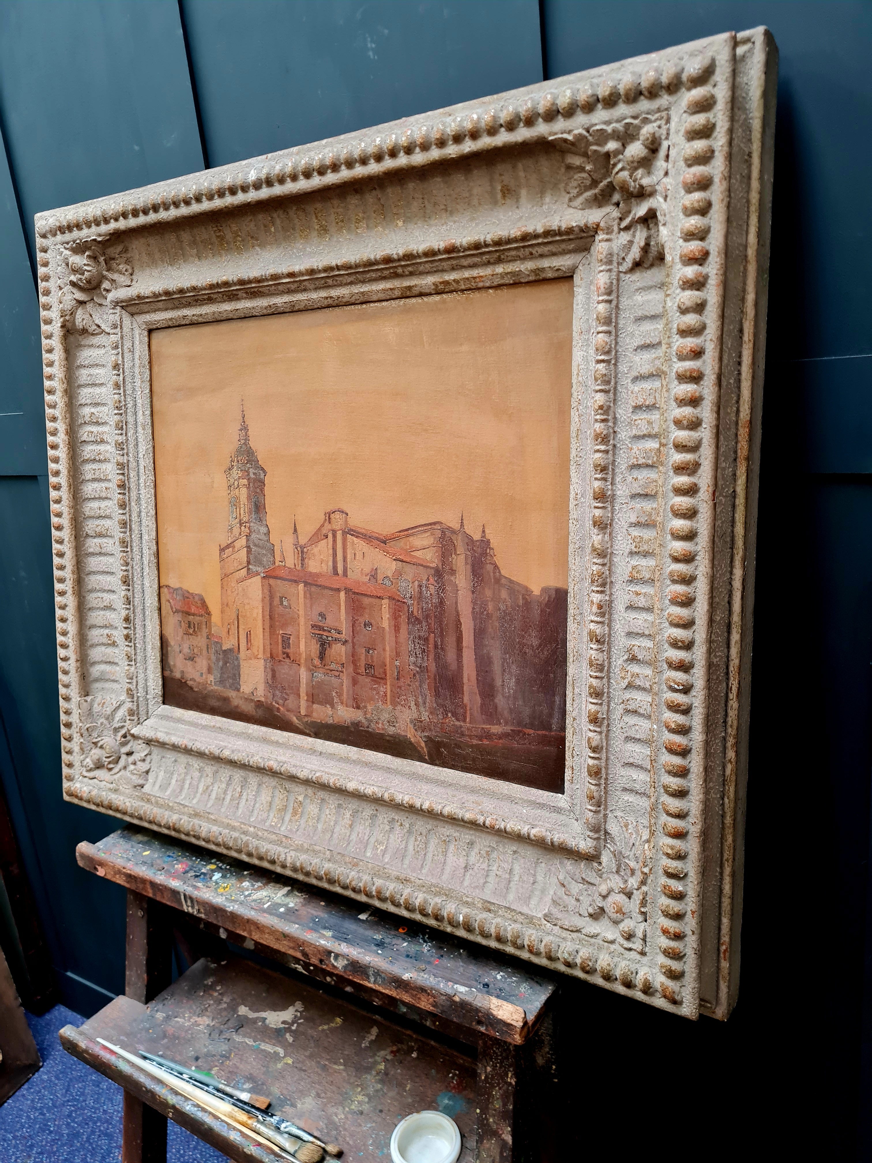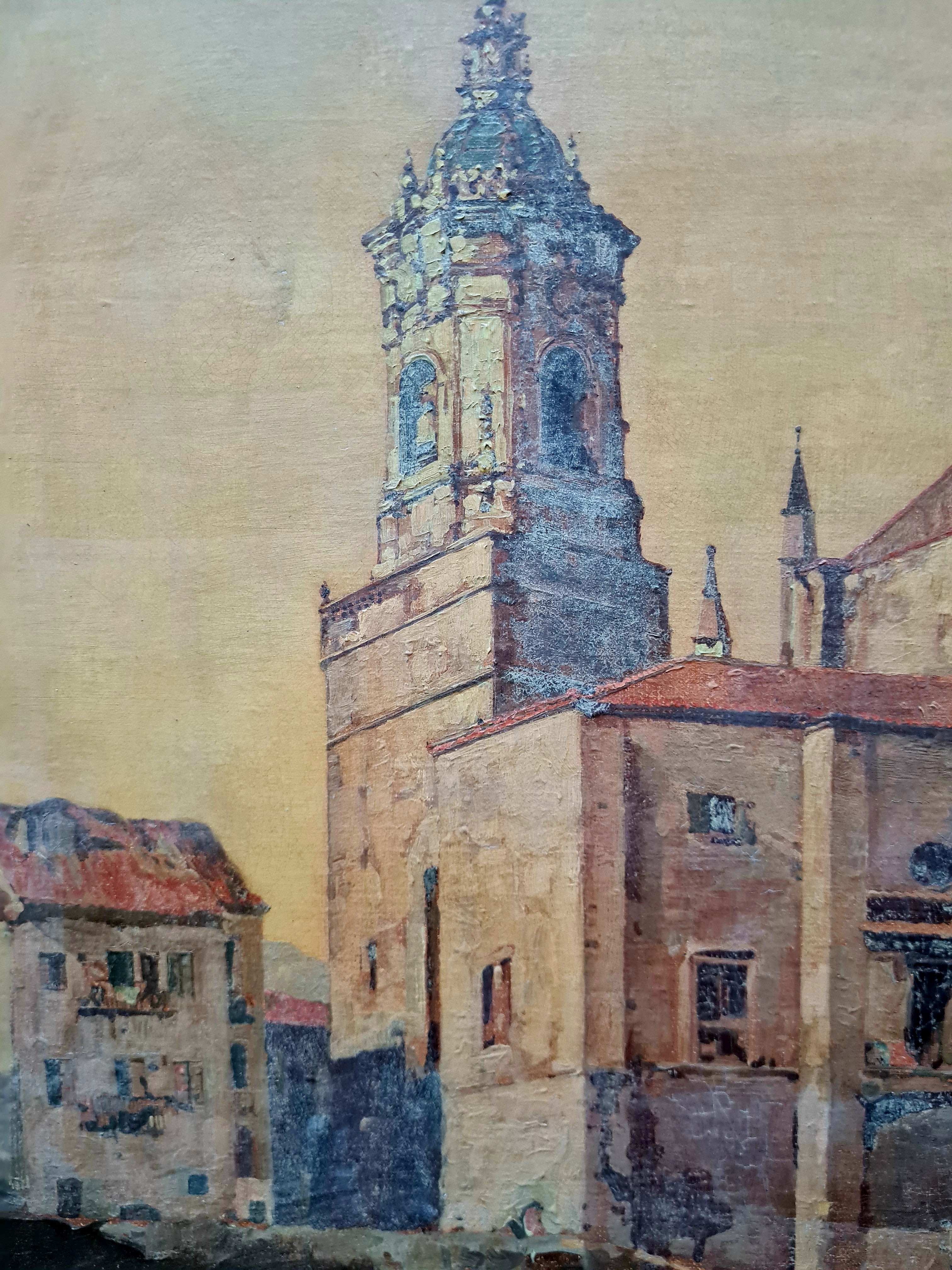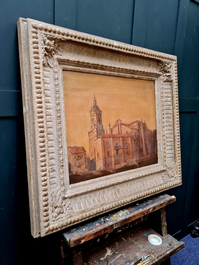 Antique Early 20th Century Framed Oil Painting on Canvas - Sta. María de la Asunción y del Manzano Church, Spain.