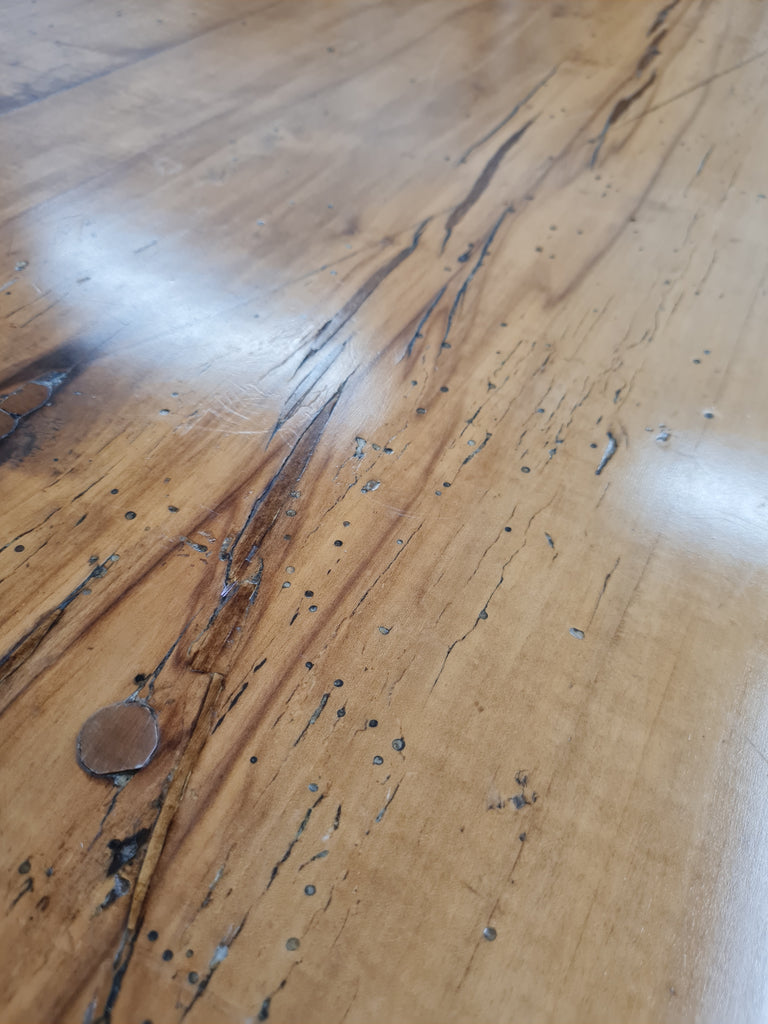 Finish appears to be a more recent hard waxoil. Age related wear including light surface scratches some historic subtle ring marks.
